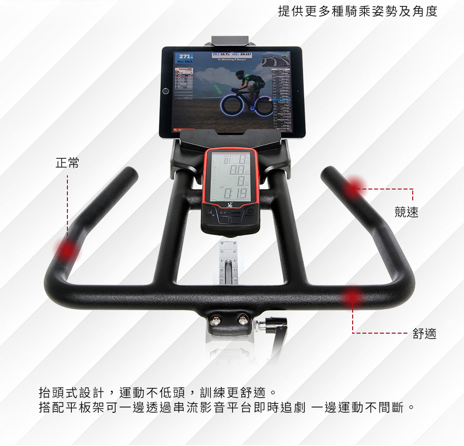 ◆ 三段式手握把設計,搭配有氧課程調整手握處