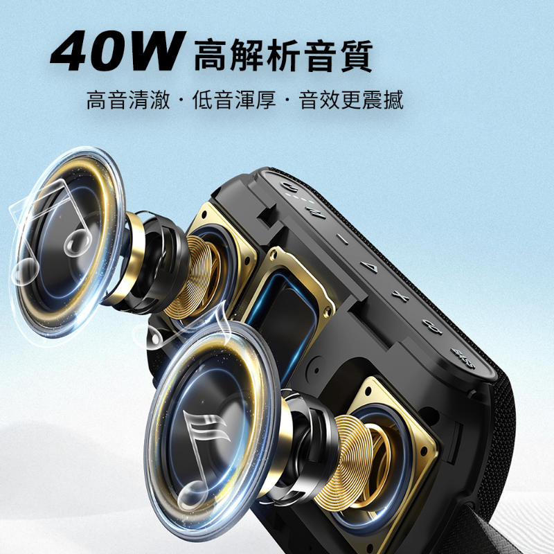 40W 強勁輸出,展現高音清澈、低音渾厚的立體層次 🎶 每一首歌都能細膩還原,帶來震撼而純粹的聽覺體驗。