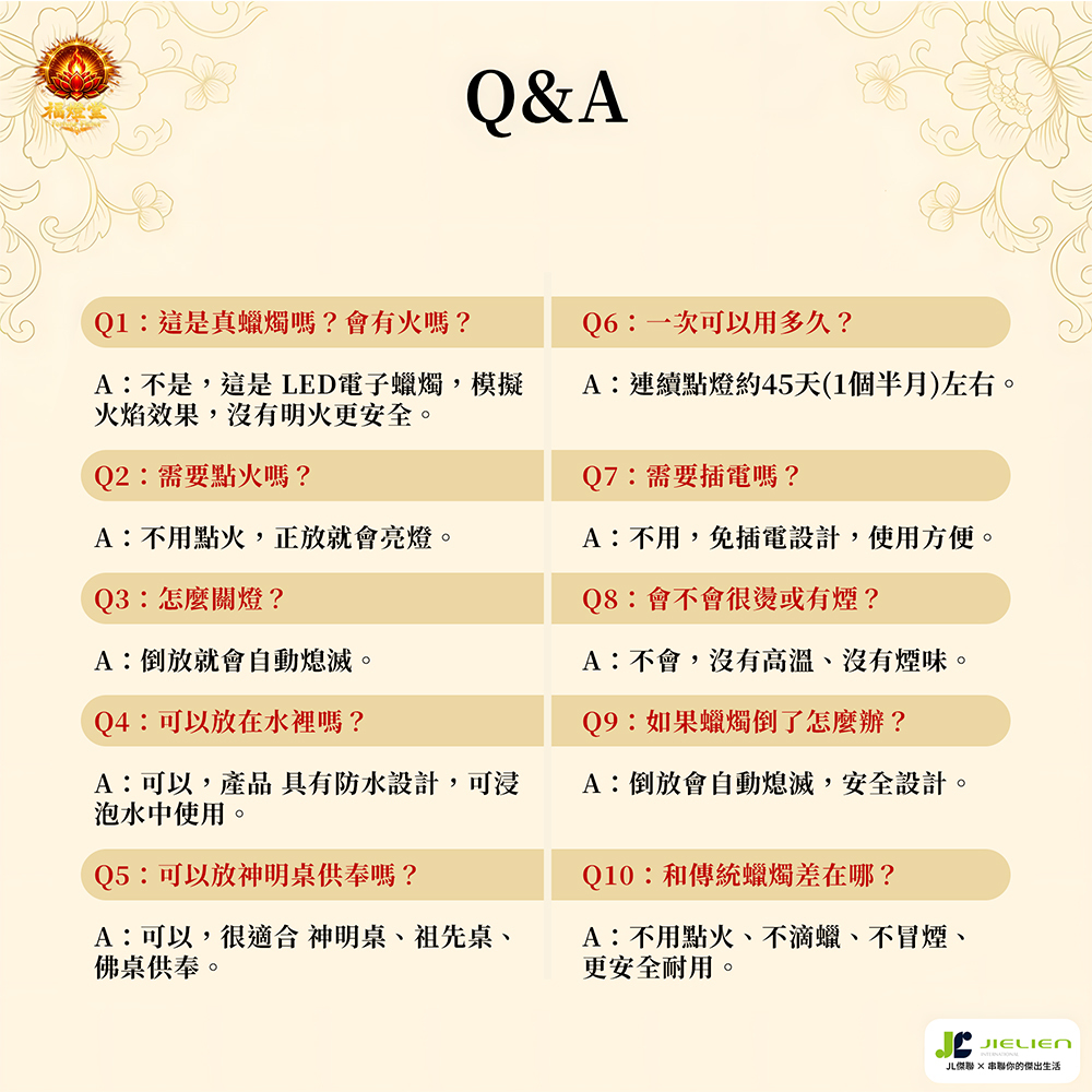 • 無明火設計|安全安心,長時間供奉也不擔心