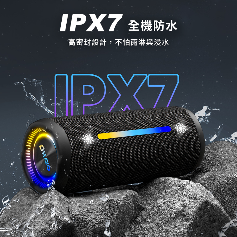 IPX7 全機防水 💦 戶外雨淋也能安心播放