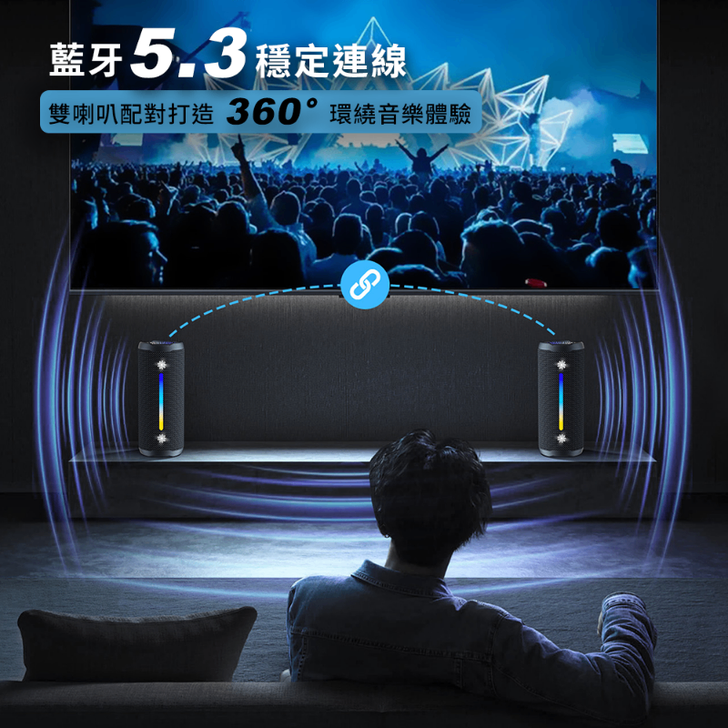 高速穩定傳輸,雙喇叭串聯可打造 360° 環繞音樂體驗。 🌙