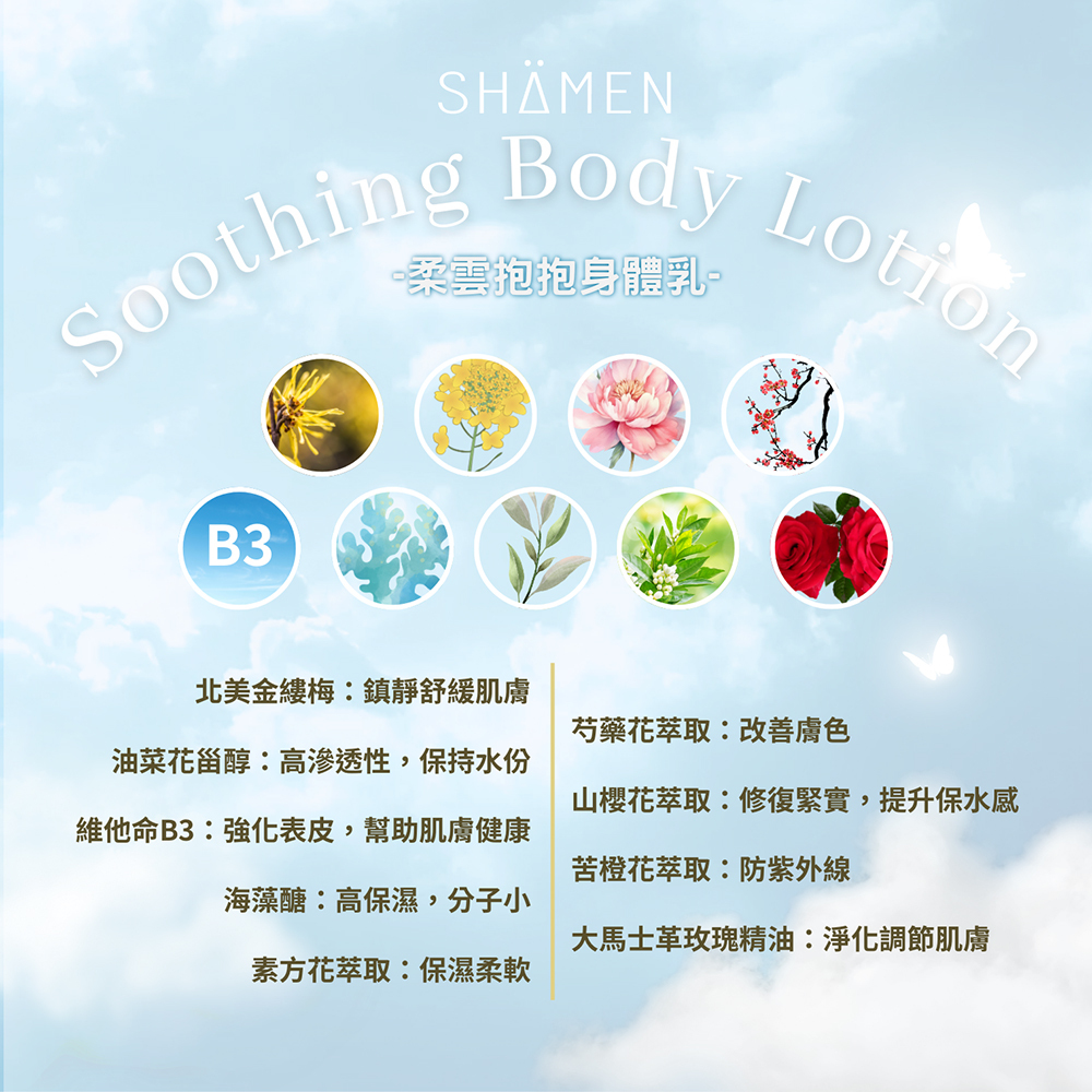 ■【SHÄMEN】21柔雲抱抱沐浴乳 ■【SHÄMEN】22柔雲抱抱身體乳 |