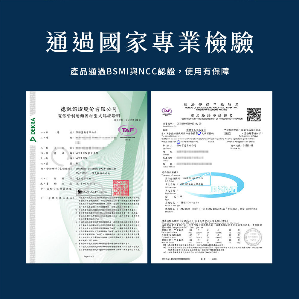 全機通過BSMI與NCC認證,品質安全有保障,