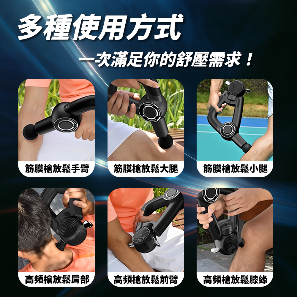 A:【雙鋒高頻槍】內附 7 款專屬可替換按摩頭,從大肌群到細部關節皆能對應,滿足全身放鬆需求,專業度與實用性遠勝他牌。