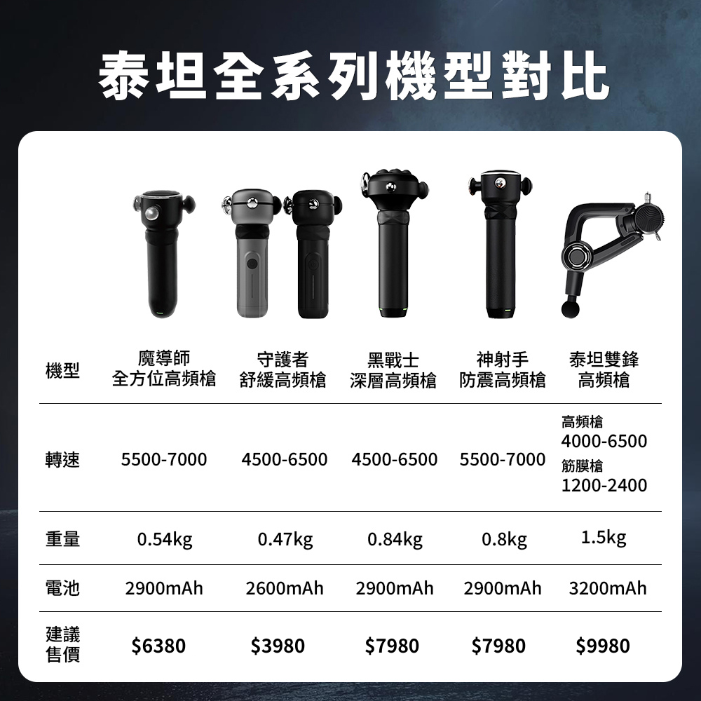 魔導師、守護者、黑戰士、神射手、雙鋒款,從轉速、重量到電池容量一次清楚比較,幫助你找到最適合的機型。