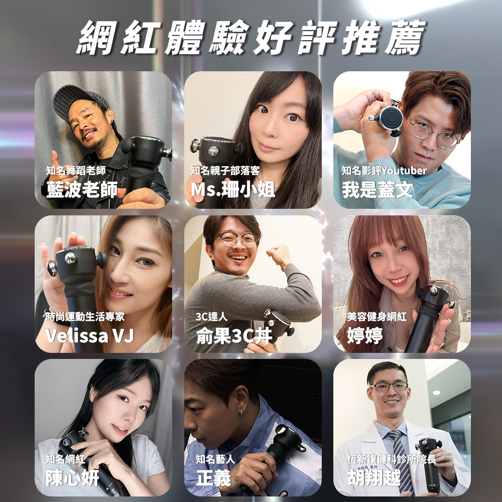 多位網紅與健身達人實測後好評推薦,讚賞其防震設計與深層舒緩效果。輕巧便攜,適合上班族、運動族與長時間勞動者。