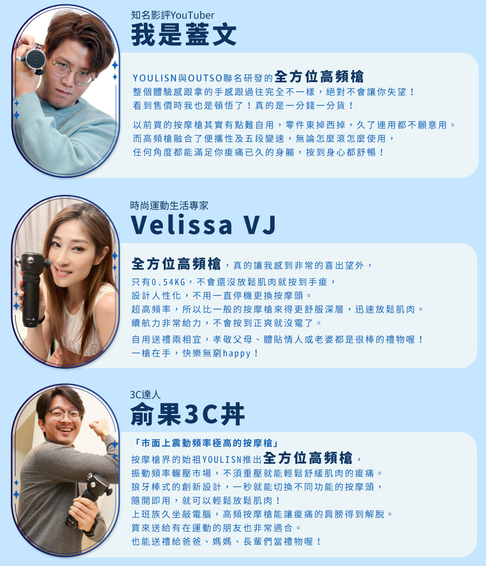 | 商品名稱 | 按摩槍【YOULISN優力神 x OUTSO】全方位高頻槍 |