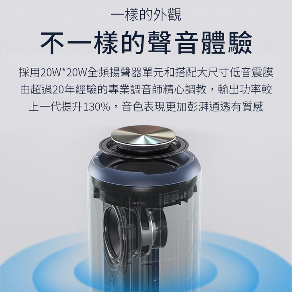 採用20W×2全頻單元與大尺寸低音震膜,由調音師親自調校,聲音層次更細膩,輸出功率提升130%,展現澎湃質感。