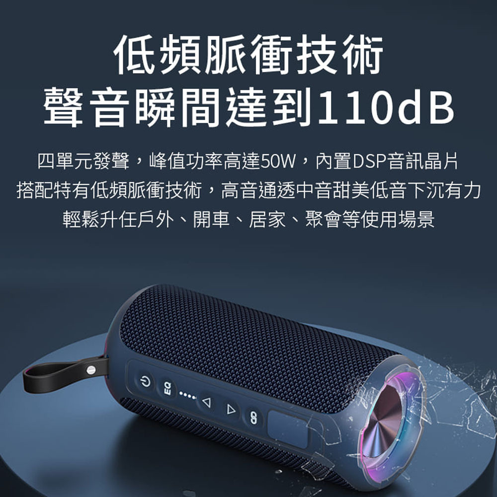 搭載四單元發聲系統與低頻脈衝技術,瞬間音壓高達110dB,無論室內或戶外,都能享受立體飽滿的環繞音效。