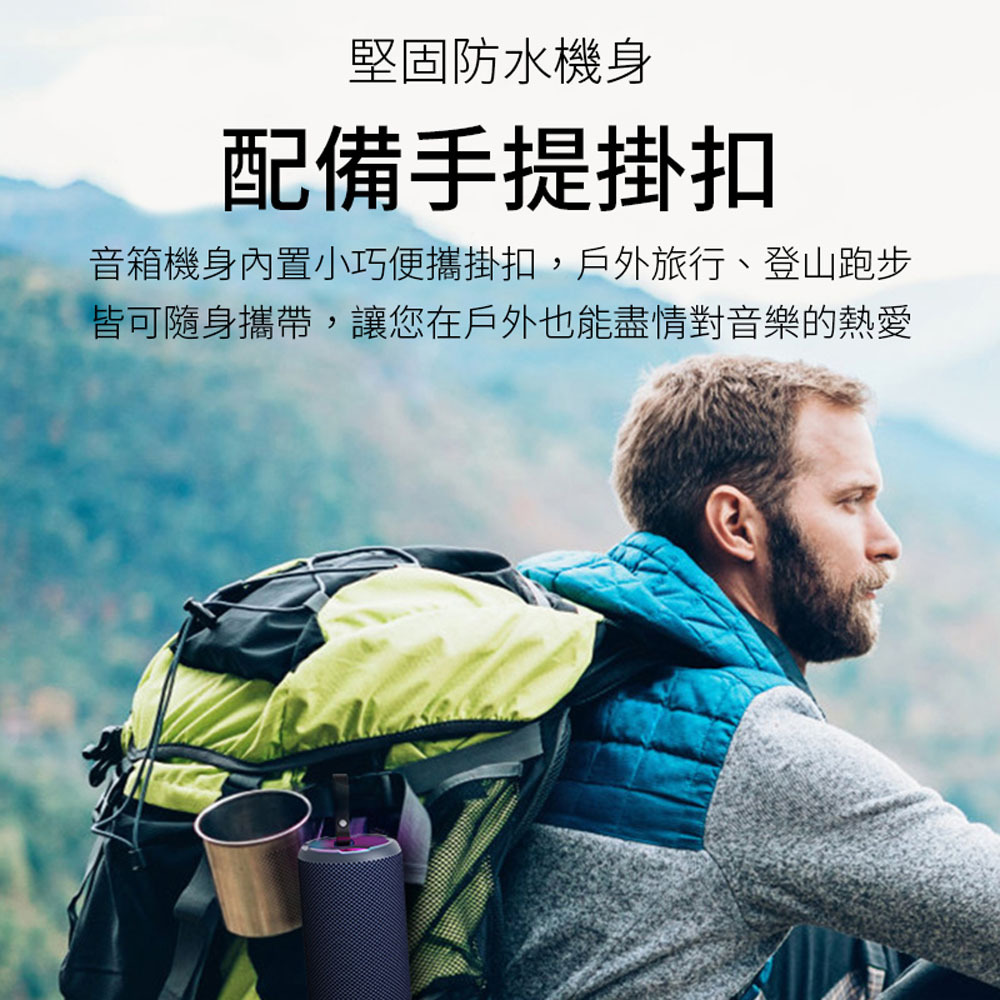 機身內建掛扣設計,讓你輕鬆掛在背包或手提上,跑步、登山、旅行等戶外活動都能輕鬆帶著走,音樂隨行。