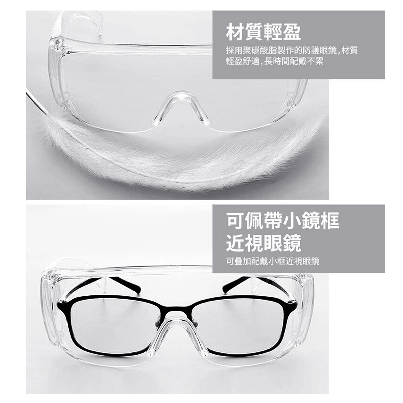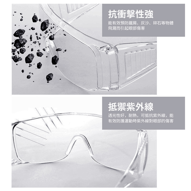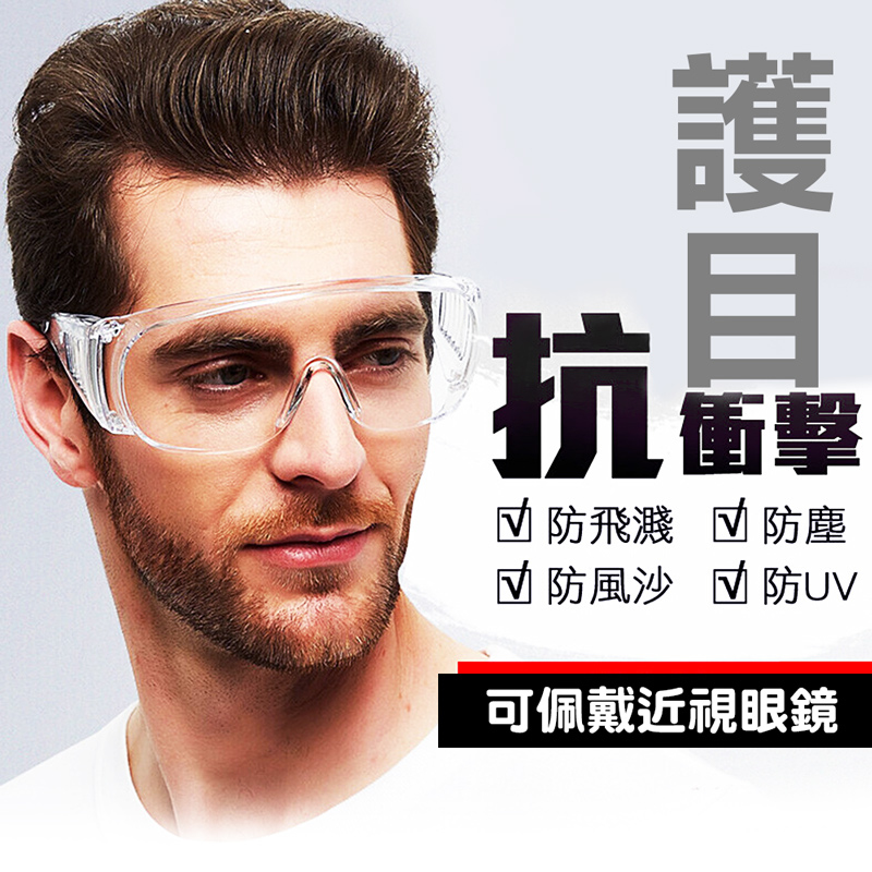 預防飛沫、粉塵、灰沙等飛濺造成眼部傷害透明護目鏡