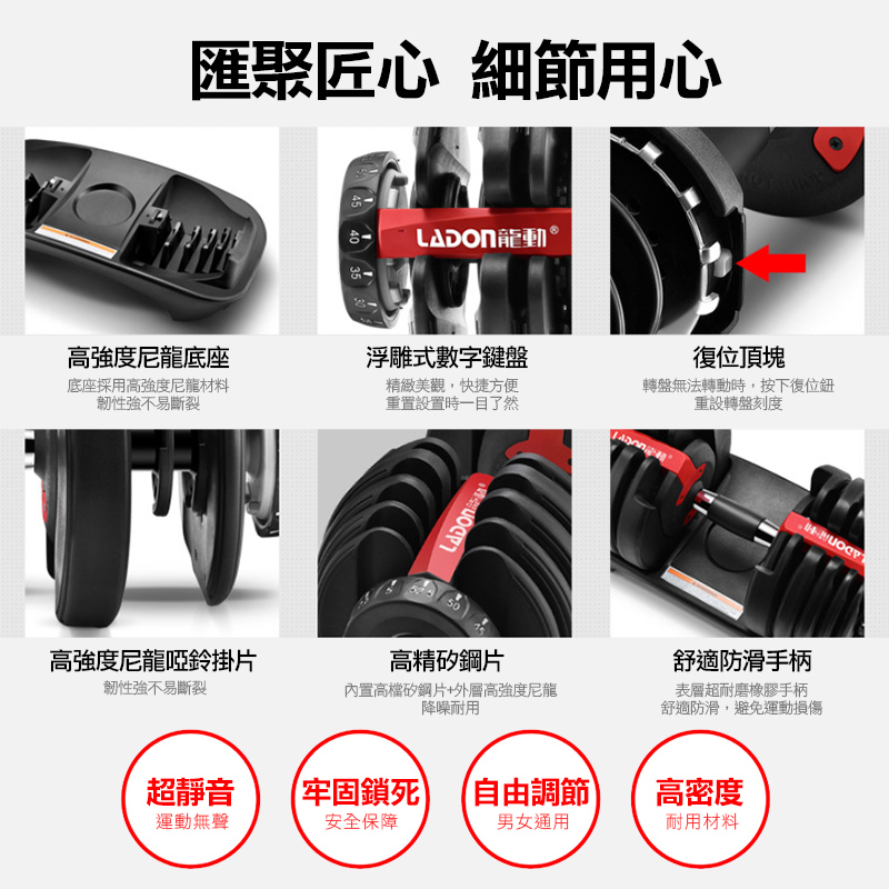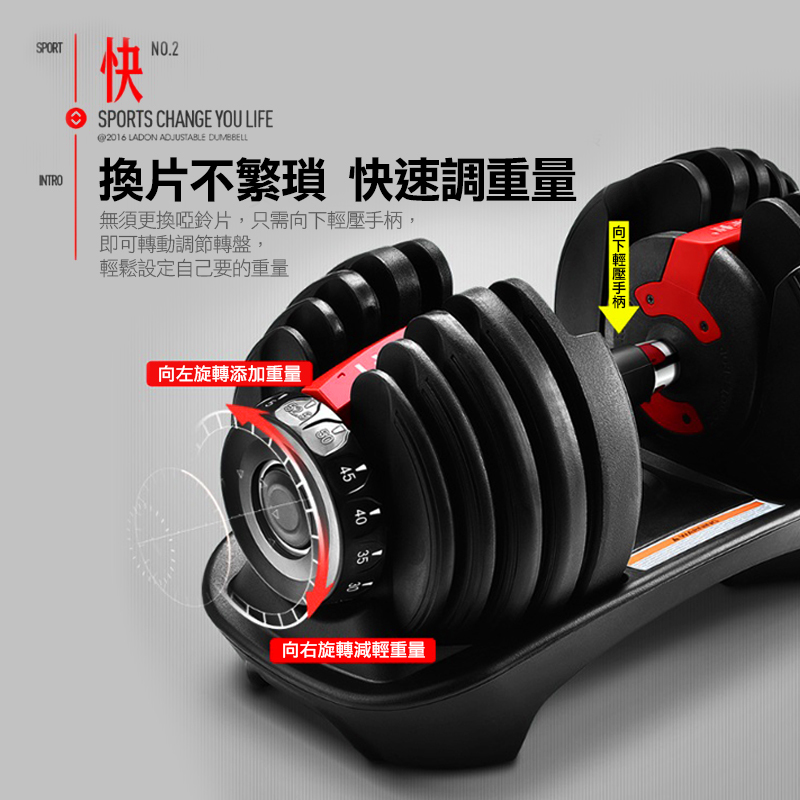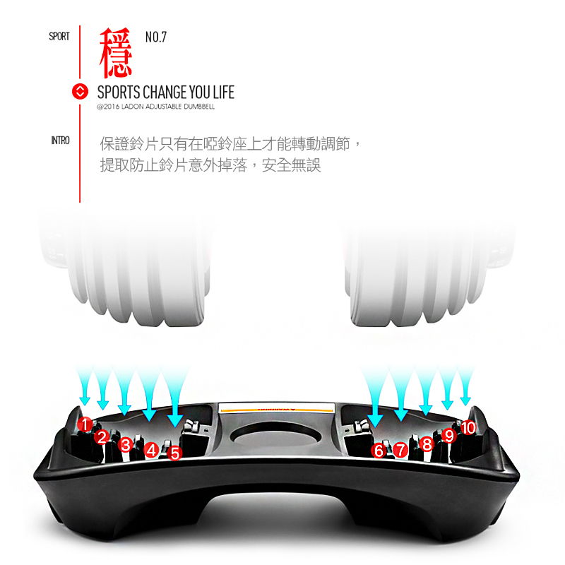牢固鎖死/10道鎖扣設計更安全 、自由調節/換片不繁瑣快速調重量